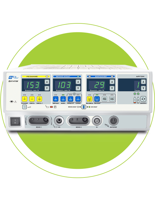 Аппарат представляет собой современное широкополосное радиоволновое оборудование, сочетающее методы радиоволновой хирургии и аргоноплазменной абляции.